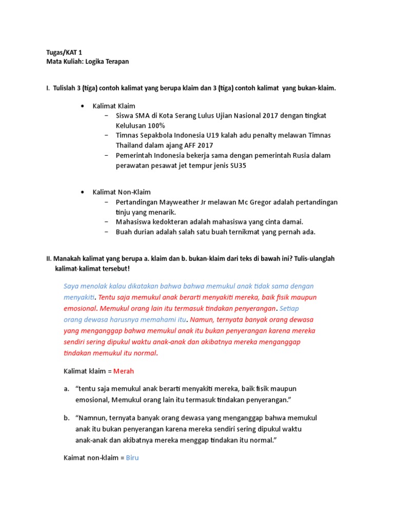 Contoh Kalimat Logis Dan Tidak Logis Sekali from image.slidesharecdn.com Contoh kalimat efektif adalah baik mahasiswa baru atau mahasiswa lama dikenakan peraturan yang sama dan masih ada 40+ contoh. Laras mengatakan bahwa dia akan main kerumahku nanti sore. Pernyataan kuantor adalah bentuk logika matematika berupa pernyataan yang memiliki kuantitas. Contoh dari kalimat langsung dan kalimat tidak langsung sangatlah banyak dan sering kita gunakan. Pilihlah satu jawaban yang tepat dengan memberikan tanda silang. Sebaliknya, kalimat opini menyatakan kalimat yang masih bersifat gagasan, pendapat, saran ataupun kritik dari seseorang atau segolongan orang yang belum ada pembuktian mengenai kebenarannya. Dari contoh kalimat terakhir ini juga masuk akal dan dapat dipahami bahwa mahasiswa yang lulus dari kampus indonesia mudah bekerja dan juga berkualitas. Dasar logika, pengertian logika bahasa indonesia :