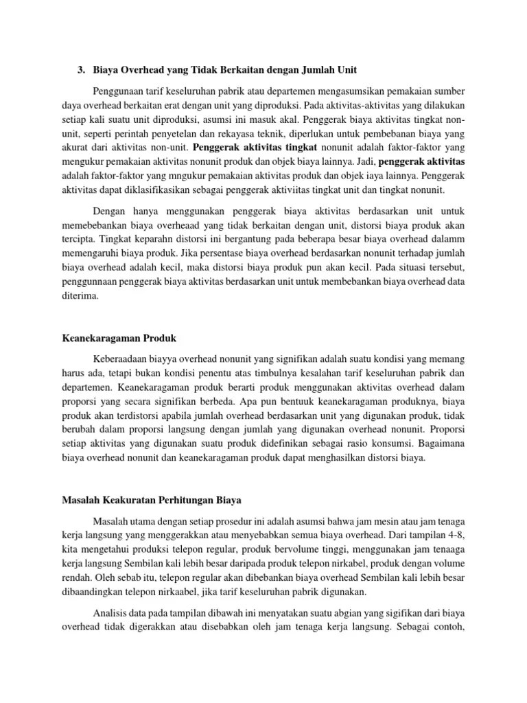 Menghitung persentase biaya overhead kita dapat mengetahui persentase biaya overhead terhadap keseluruhan biaya dengan membandingkan antara biaya tidak langsung dengan biaya langsung. Misalnya jika hasilnya adalah 25%, hal itu berarti biaya yang kita keluarkan untuk biaya overhead mencapai 25% dari total pengeluaran bisnis. Hasil dari perhitungan tersebut akan menunjukkan persentase biaya overhead yang dikeluarkan perusahaan dalam mengelola bisnis. Kalikan berapa persen dari pendapatan yang anda bayar untuk biaya overhead. Misalnya jika hasilnya adalah 25%, hal itu berarti biaya yang kita keluarkan untuk biaya overhead mencapai 25% dari total … Proses kedua adalah mencari persentase biaya overhead per kategori yang dibandingkan dengan biaya overhead keseluruhan. Misalnya menghitung persentase biaya overhead untuk tenaga kerja bulanan, maka rumus mencari persentase biaya overhead adalah: Misalnya, dalam kasus di atas, untuk setiap rupiah yang dihasilkan perusahaan, 15 persen …. Proses kedua adalah mencari persentase biaya overhead per kategori yang dibandingkan. Biaya overhead berapa persen / contoh kategori dasar biaya overhead yang perlu anda : Bagi biaya overhead dengan jumlah yang dibuat dalam penjualan, lalu kalikan dengan 100 untuk mendapatkan … Caranya adalah jumlah biaya tidak langsung yang ada dibagi … 09/08/2019 · biaya overhead pada proyek dapat dikelompokkan dalam 2 jenis biaya, yaitu: